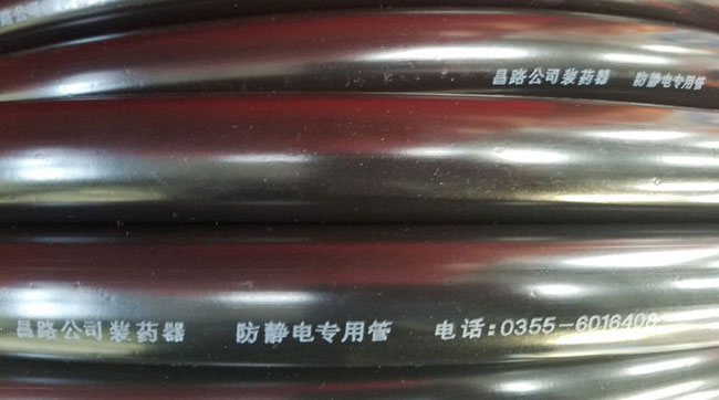 裝藥器專(zhuān)用半導體防靜電輸藥膠管,是裝藥器在輸藥過(guò)程中唯一專(zhuān)用管材,具有導電、防火花、耐壓、耐酸、防腐、耐磨損等作用,是裝藥器在輸藥過(guò)程中確保人身安全,杜絕重大事故隱患的特殊管材。 防靜電專(zhuān)用管 防靜電輸藥管生產(chǎn)過(guò)程 防靜電輸藥管生產(chǎn)線(xiàn)